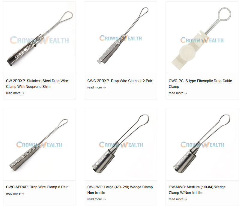 FTTH Drop Clamps: Specifically designed for Fiber-to-the-Home applications, these clamps securely hold single or dual-fiber drop cables, ensuring minimal signal loss.